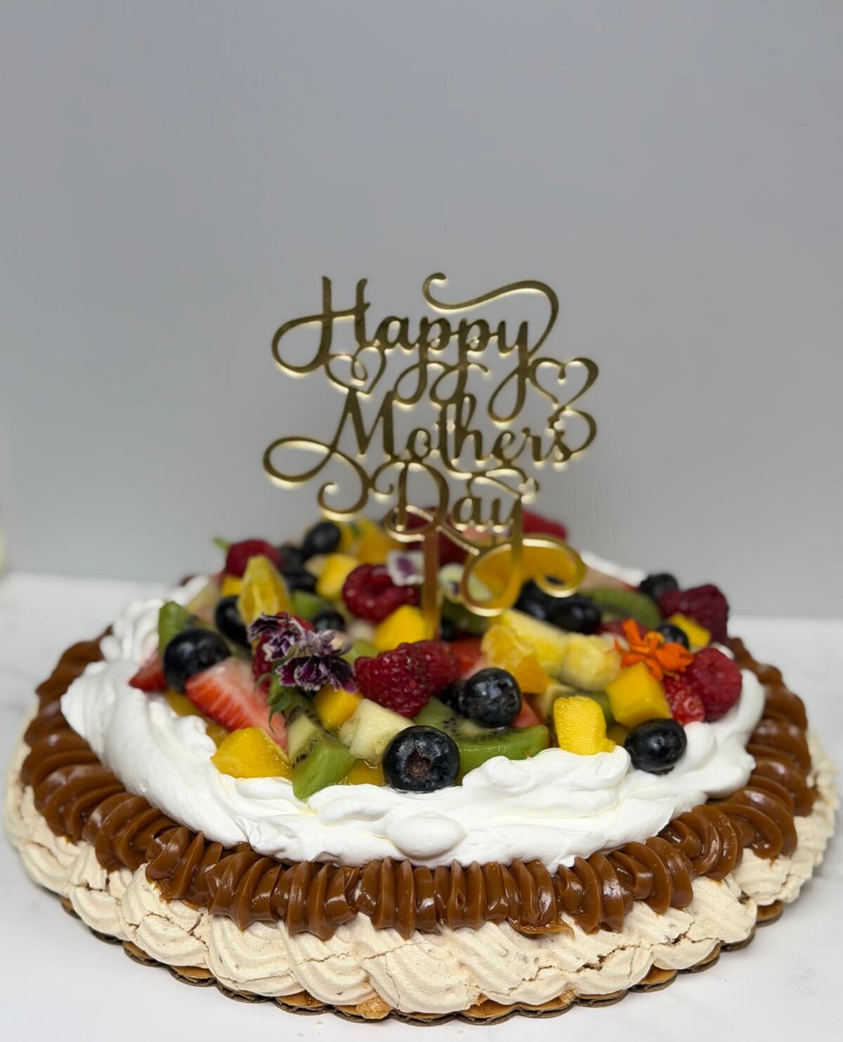A special edition of our signature product: crispy meringue with toasted pecans, dulce de leche, Chantilly cream, and tart passion fruit jam, garnished with mixed fruits. Ideal for sharing with the family (serves 10).